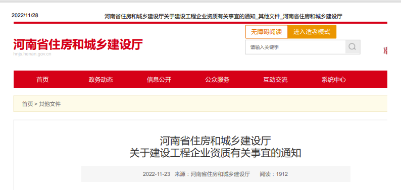 • 河南省住房城鄉(xiāng)建設(shè)廳發(fā)文:建設(shè)工程企業(yè)資質(zhì)有效期延期至2022年12月31日!